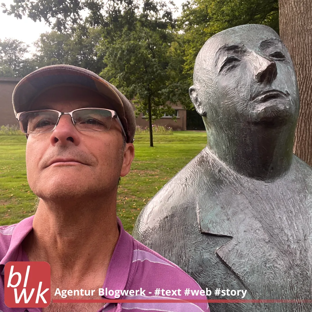 Das Blogwerk hatte Urlaub. Am Kröller-Museum in Otterloo begegnete ich Monsieur Jaques (Oswald Wenckenbach, 1956).